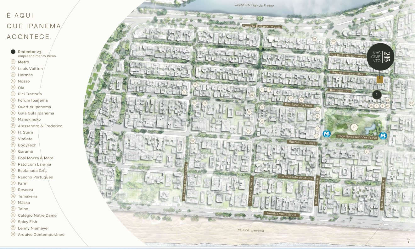 Em referência ao entorno de Ipanema, bairro entre o mar, a lagoa e a montanha, nasce esse projeto. A amplitude visual foi ponto de partida para o edifício.